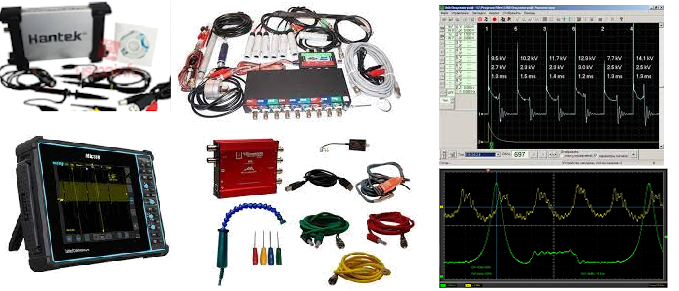 Osciloscópio automotivo > substitui quase todos os aparelhos de diagnóstico eletrônico e com o uso de transdutores também pode substituir as ferramentas mecânicas durante as análises em veículos automotores. O osciloscópio fornece um gráfico na tela representando uma amplitude em um espaço de tempo, que geralmente é muito curto, possibilitando ao reparador "ver" o funcionamento de um componente que a olho nu seria impossível.